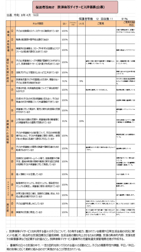 • たんぽぽ 令和7年度 放デイ事業所評価