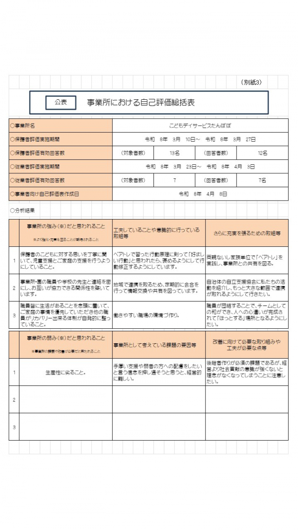 • たんぽぽ 令和7年度自己評価総括